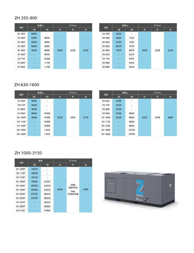 2.ZH离心式压缩机组为用户提供压缩空气,驱动机配置异步电机。
