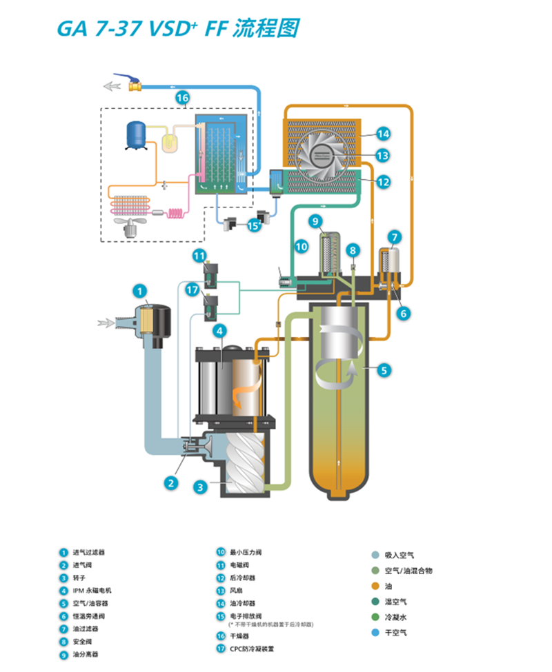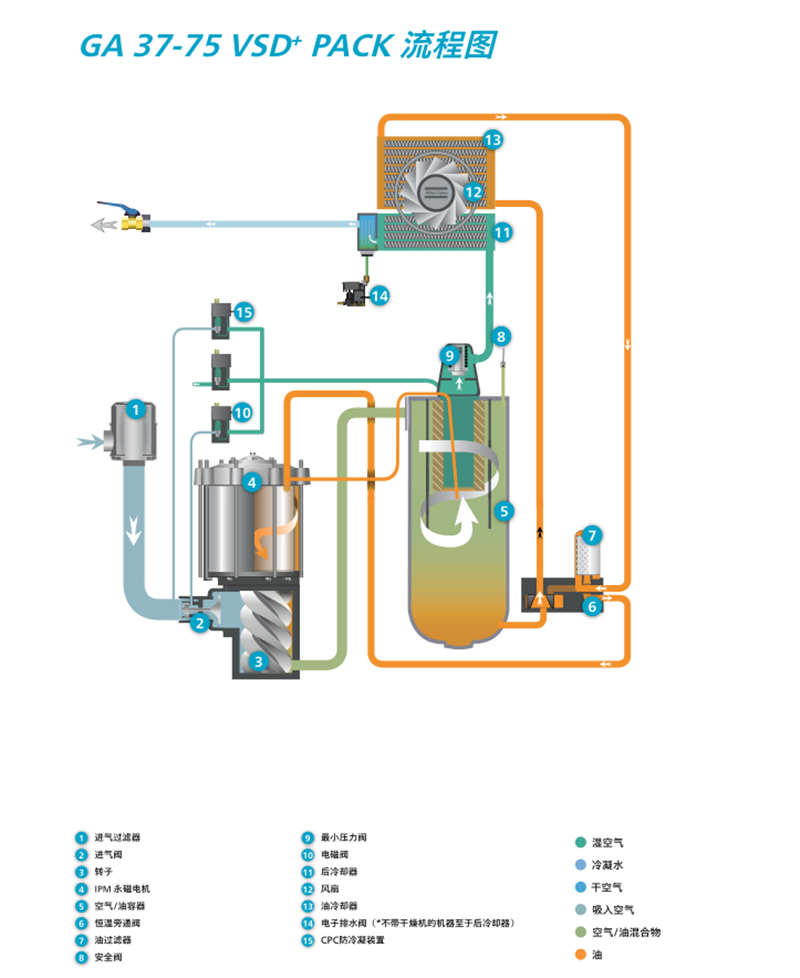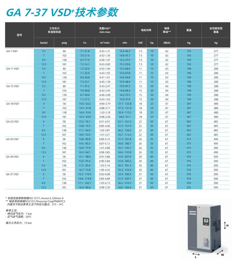 GA 系列符合 ISO 9001、ISO 14001 和 ISO 1217 标准。极低的运营成本,具有长期、无故障的使用寿命