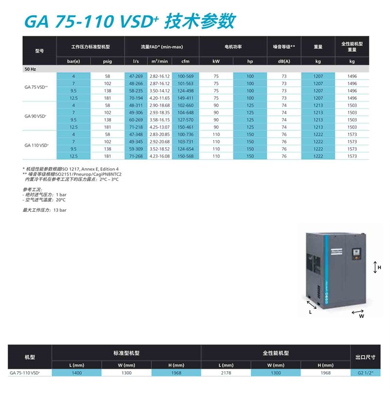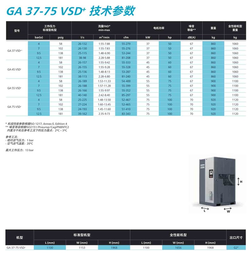 阿特拉斯·科普柯的GA7-110VSD + 系列空压机标配变转速驱动,内置永磁电机(IPM),结构紧凑、占地面积小,平均节能高达50%,可在恶劣的工况下稳定运行。GA7-110VSD + 超前的设计,在更长的运行时间内,实现成本缩减,并在压缩机行业赢得广泛关注和认可。