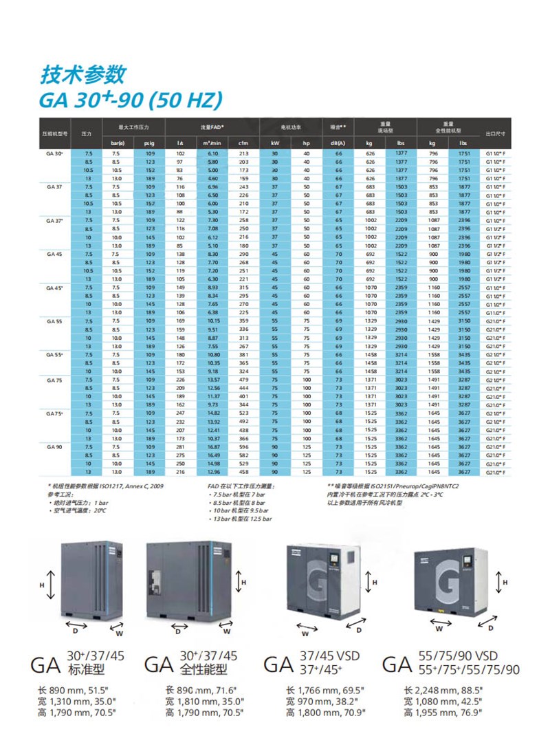 阿特拉斯•科普柯GA 30+ -90系列压缩机带给您在持久性、可靠性、和性能方面良好的体验,同时也将您的总成本降到很低。 GA VSD 、GA+ 和GA三种机型的选择为您的需求提供压缩空气解决方案以实现较好的回报。为苛刻的工况设计、制造,保障用户的生产效率。
